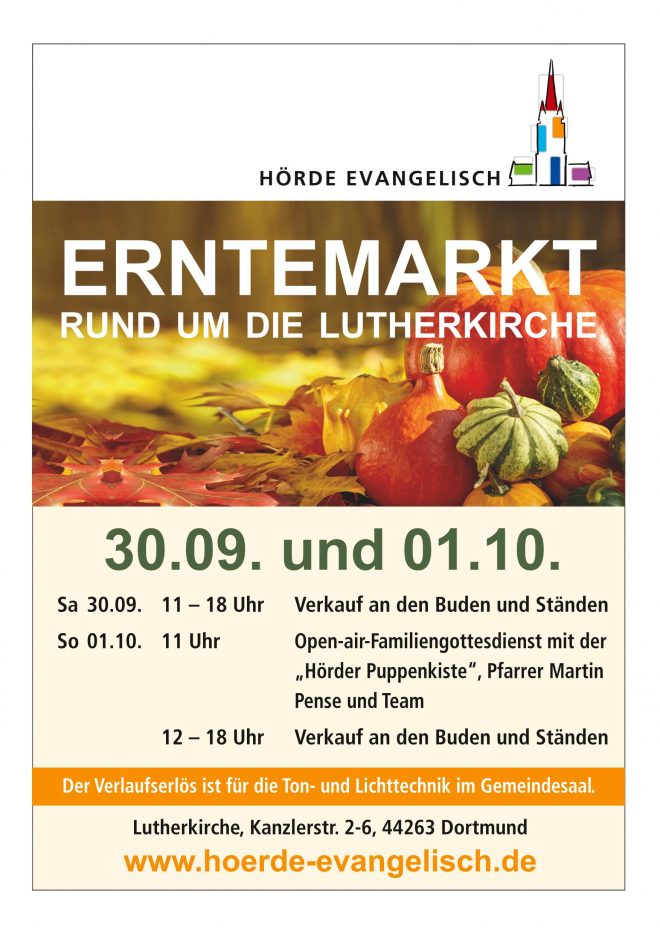 Am Samstag, 30. September und am Sonntag, 1. Oktober feiert die Ev. Kirchengemeinde Hörde ihren traditionellen Erntemarkt an der Lutherkirche, Kanzlerstr. 2-6.