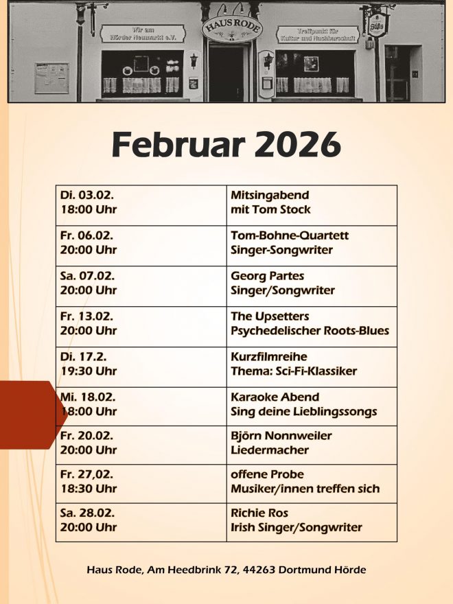 Februar Programm im Haus Rode