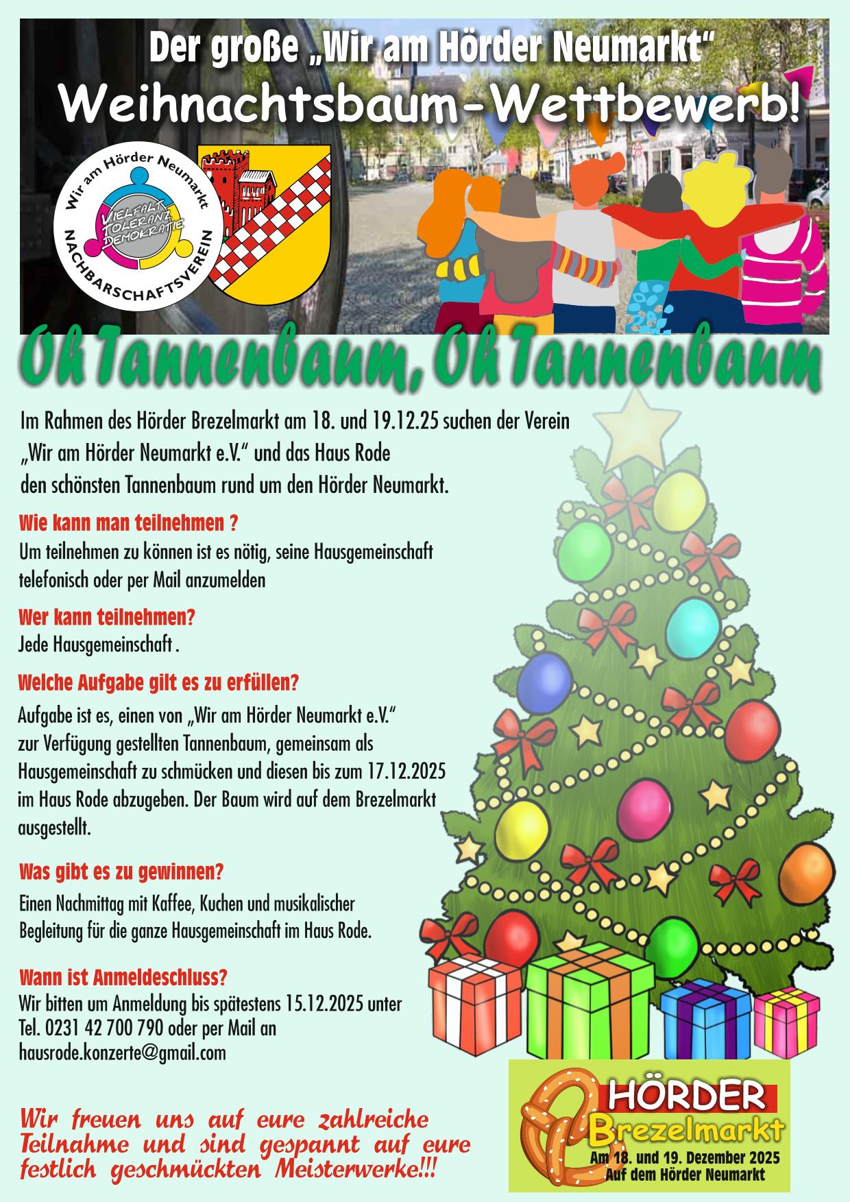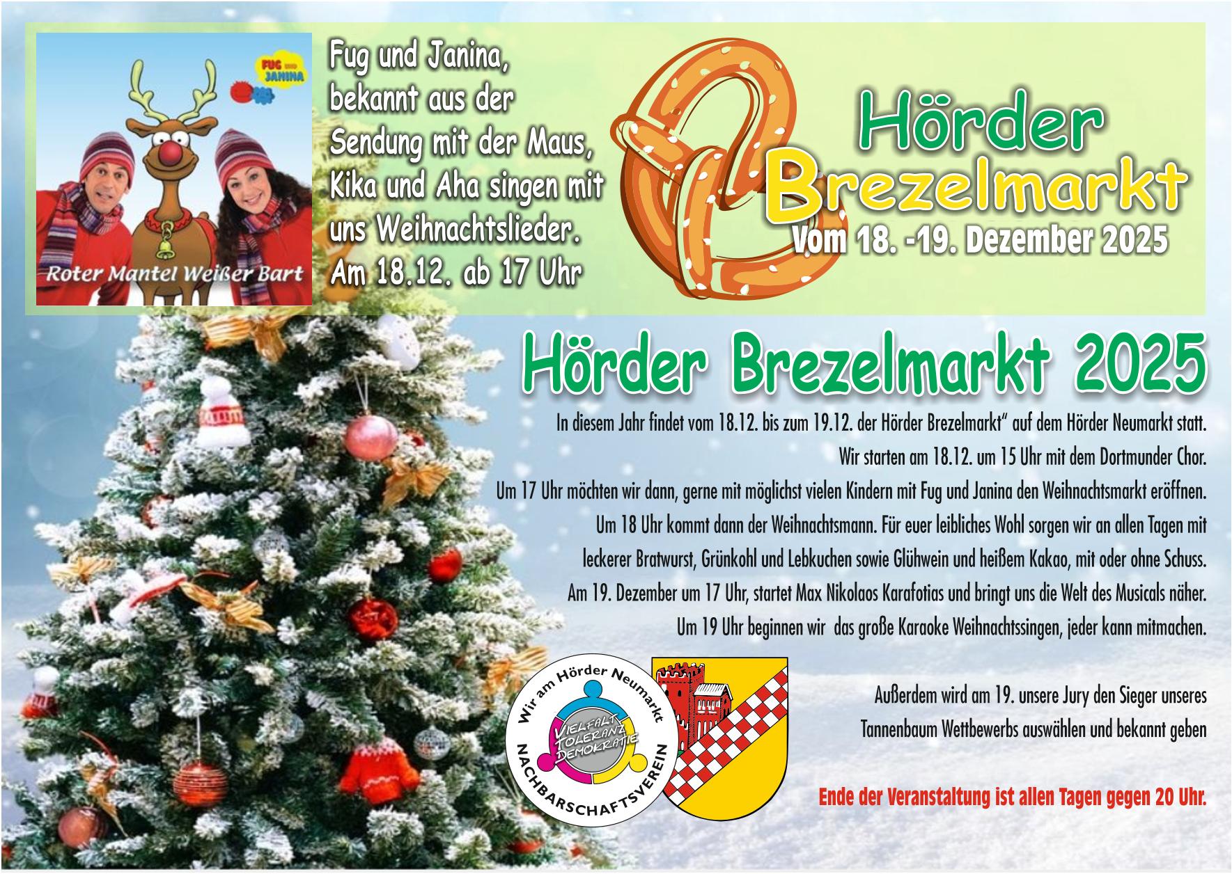 Auch im Jahr 2025 veranstaltet der Verein „Wir am Hörder Neumarkt e.V.“ wieder den „Hörder Brezelmarkt“ auf dem Hörder Neumarkt. Dieses Jahr wird der Markt am 18. und 19. Dezember (Donnerstag/Freitag) stattfinden.