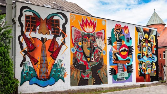 Diesmal kehren wir nicht an einem Hörder Begegnungsort ein, sondern schauen uns zum Abschluss des Spaziergangs ein Stück Hörder Streetart (Graffiti) an und Jochen und Jutta Deschner sind so nett, uns etwas über die Entstehung zu erzählen. Dabei trinken wir dann einen Kaffee.