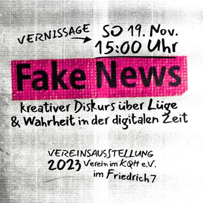 Einige unserer Künstler und Künstlerinnen haben sich zusammen geschlossen und sich über das Thema ,,Fake News“ Gedanken gemacht. Ihre gewonnenen Erkenntnisse & eingenommenen Perspektiven haben die Kunstschaffenden gestalterisch interpretiert und stellen diese nun im Friedrich7 aus.