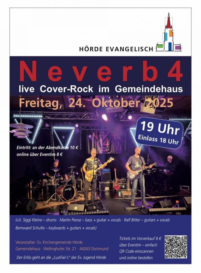 Bereit für einen Abend voller Power, Klassiker und Stimmung? Dann sei dabei, wenn NeverB4, die legendäre Cover-Rockband , das Gemeindehaus Hörde erneut zum Beben bringt!