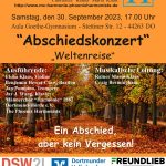 Der Männerchor „Harmonie“ 1882 gibt am Samstag, 30. September sein Abschiedskonzert „Weltenreise“ in der Aula des Goethe Gymnasiums. Der Eintritt ist frei, Spenden sind aber willkommen!