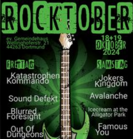 Die LuziFair´s der ev. Jugend der Ev. Kirchengemeinde Hörde laden zum Festival ein. Zum 9. Mal jährt sich in diesem Jahr das „Rocktober-Event“ mit 8 Bands an 2 Tagen, am 18. und 19. Oktober.