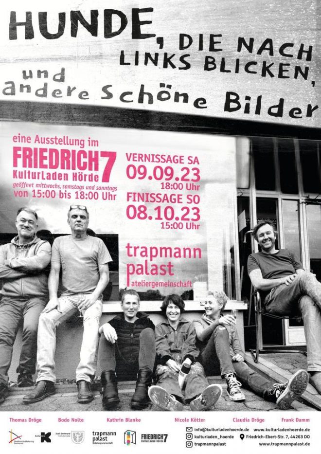 Im September öffnet der Friedrich7 seine Türen, um die Ateliergemeinschaft ,,trapmannpalast“ mit ihrer Ausstellung ,,Hunde, die nach links blicken, und andere schöne Bilder´´vorzustellen.