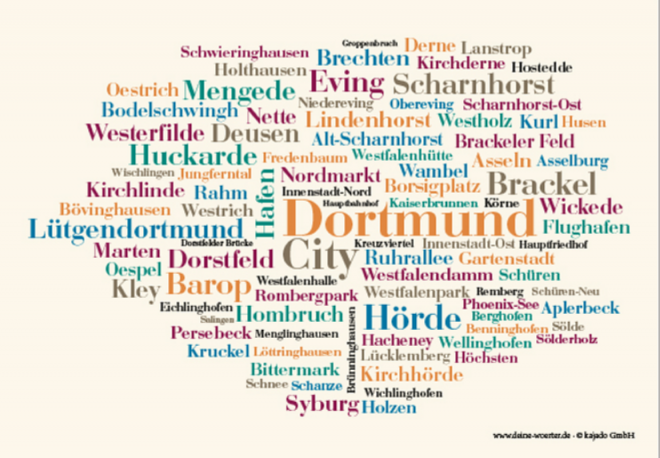 Stefanie Augustin führt eine Performance auf, in der zwei Dortmunder Vororte vorkommen. Auf Wunsch wird sie noch einmal durch die Ausstellung führen oder aus ihrem Buch vorlesen.